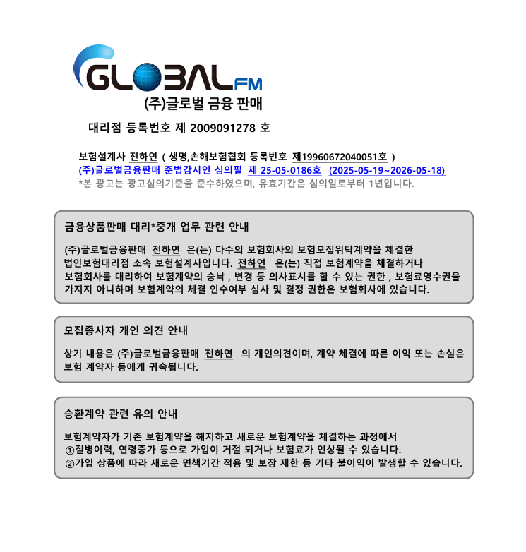 안녕하세요 보장설계매니저입니다. 궁금하신 일이 있으시면 여기를 꾹~