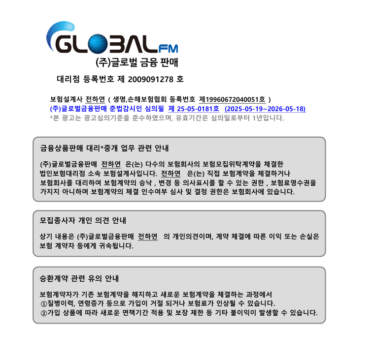안녕하세요 보장설계매니저입니다. 궁금하신 일이 있으시면 여기를 꾹~